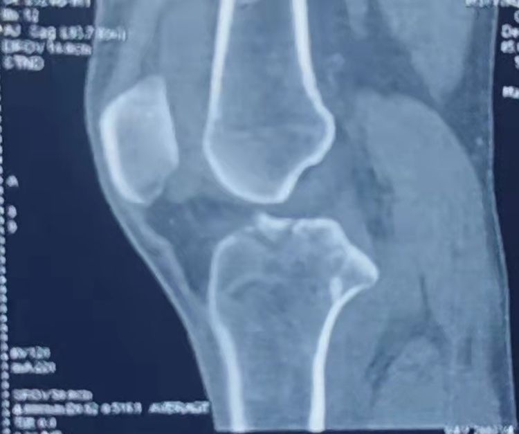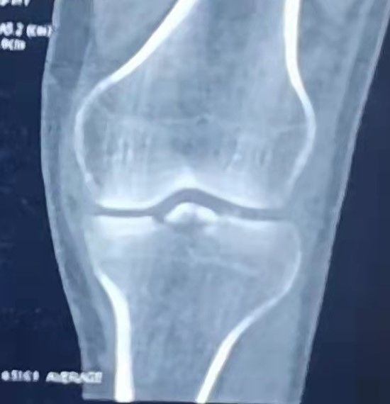现病史:患者于1周前工作过程中不慎扭伤,致左膝关节疼痛、肿胀,为剧痛,不敢正常行走;不伴肢体麻木及发凉,就诊于当地医院,对症药物治疗,症状未明显缓解,今日就诊于我科门诊,查左膝DR、CT三维重建考虑为”左膝ACL胫骨止点撕脱骨折、左胫骨平台骨折“,收入院。